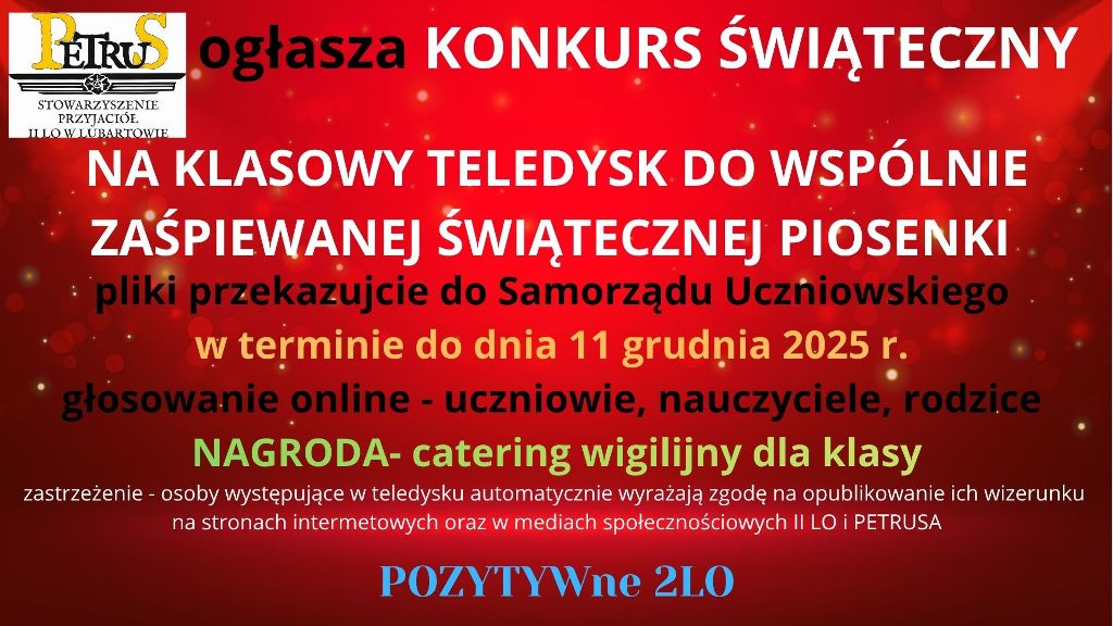 "Petrus" Stowarzyszenie Przyjaciół II LO ogłasza konkurs świąteczny! Zapraszamy!