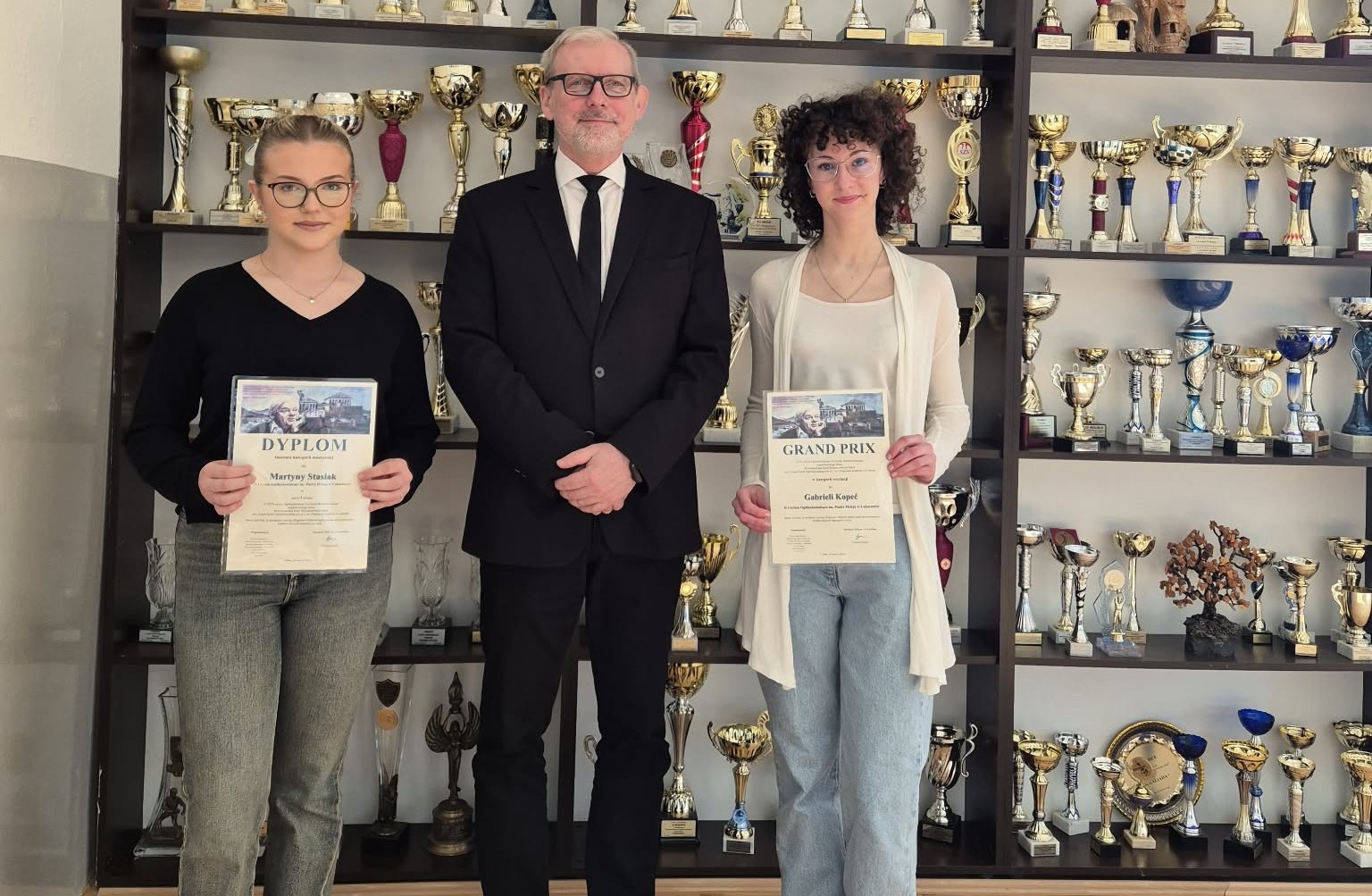 Podczas uroczystego Koncertu Laureatów XXVI Ogólnopolskiego Festiwalu Herbertowskiego, który odbył się 24 marca 2026 r., główna nagroda - statuetka GRAND PRIX w kategorii recytacja trafiła do rąk GABRIELI KOPEĆ, uczennicy klasy IVg, natomiast 1. MIEJSCE w kategorii muzycznej zostało przyznane MARTYNIE STASIAK z klasy IV E.