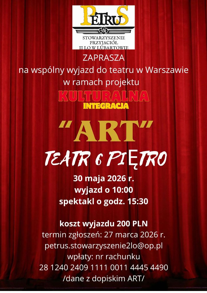 "Petrus" Stowarzyszenie Przyjaciół II LO zaprasza wspólny wyjazd do teatru!