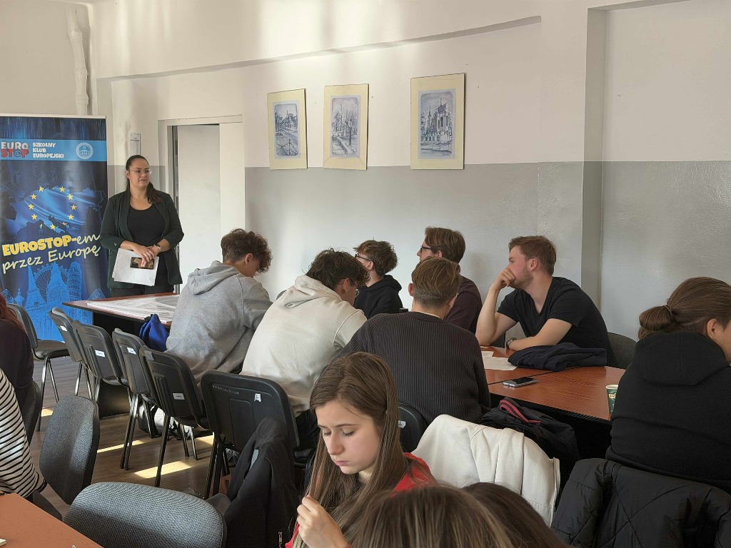 8.10.2025 Szkolny Klub Europejski „EUROSTOP” zorganizował warsztaty pt. "Prawa i obowiązki obywatela w Unii Europejskiej", których celem było przybliżenie uczniom idei i zasad funkcjonowania Unii Europejskiej, jej instytucji oraz najważniejszych zadań.