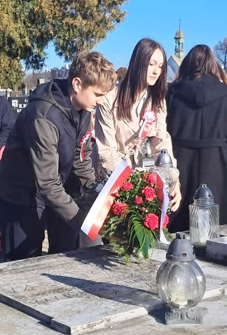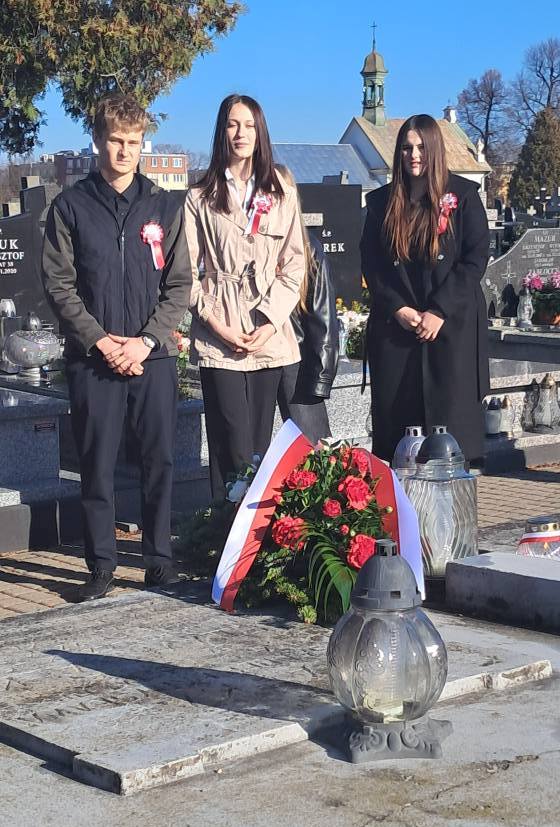 Uczniowie naszego liceum oddali cześć bohaterom poległym w walce o niepodległość podczas uroczystości miejskich 7 listopada na cmentarzu parafialnym w Lubartowie. Delegacja uczniów z klasy II A wraz z panią Małgorzatą Chudzik złożyła kwiaty i zapaliła znicze na grobie rodziny Lalków, czyli na symbolicznym miejscu pochówku zamordowanego w Katyniu kpt. Wacława Lalki.