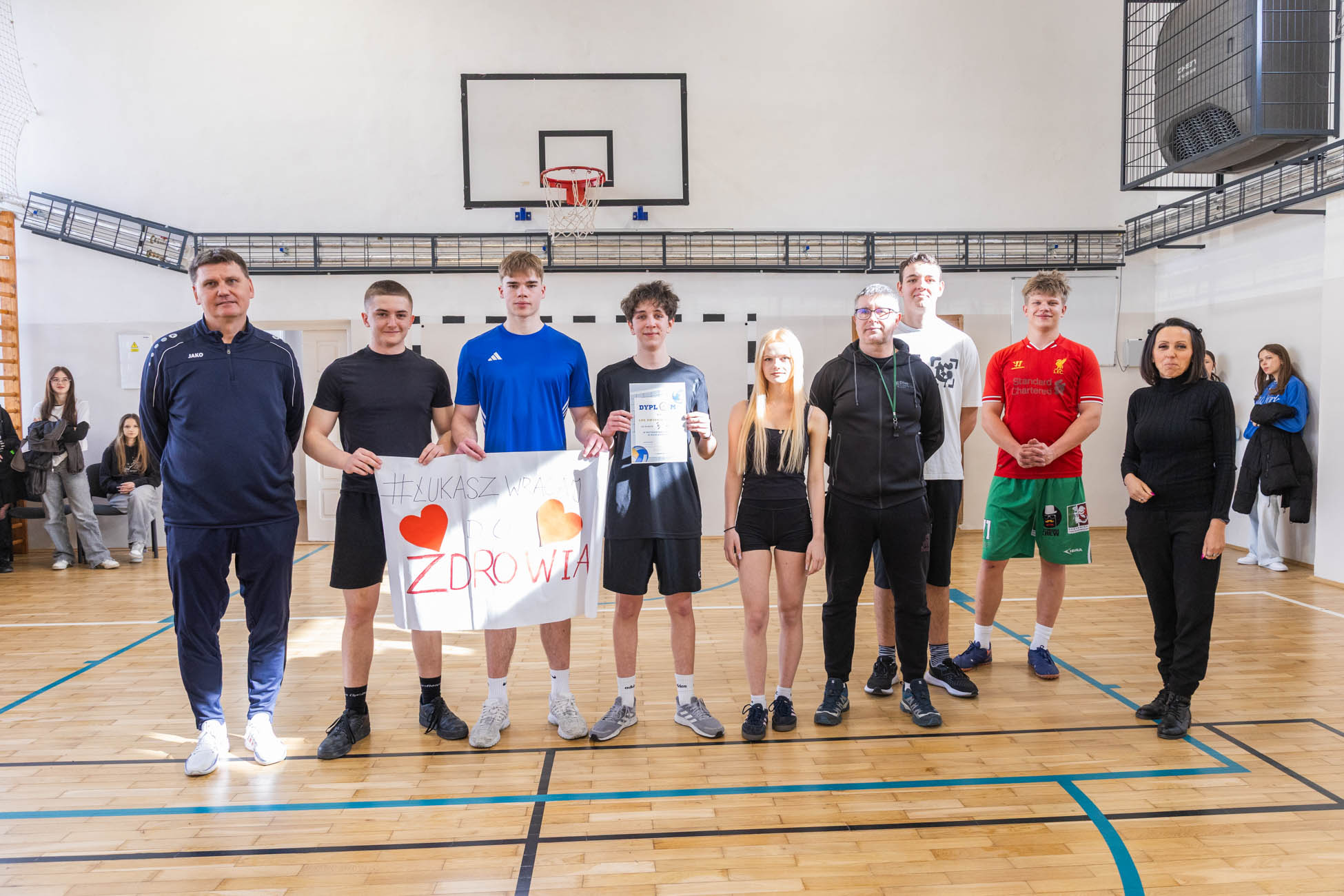 Projekt „W zdrowym ciele zdrowy duch” został zrealizowany z inicjatywy naszego zespołu: Anny Skrzypiec, Antoniego Parafiniuka, Igora Czarachowicza, Jana Nogi, Klaudii Tomaszewskiej, Liliany Szlachty, Agaty Bącławek, Mai Badziak, Natalii Bronisz, Niny Malugi, Pawła Grosza, Sandry Podleśnej i Zuzanny Kostrubiec.
