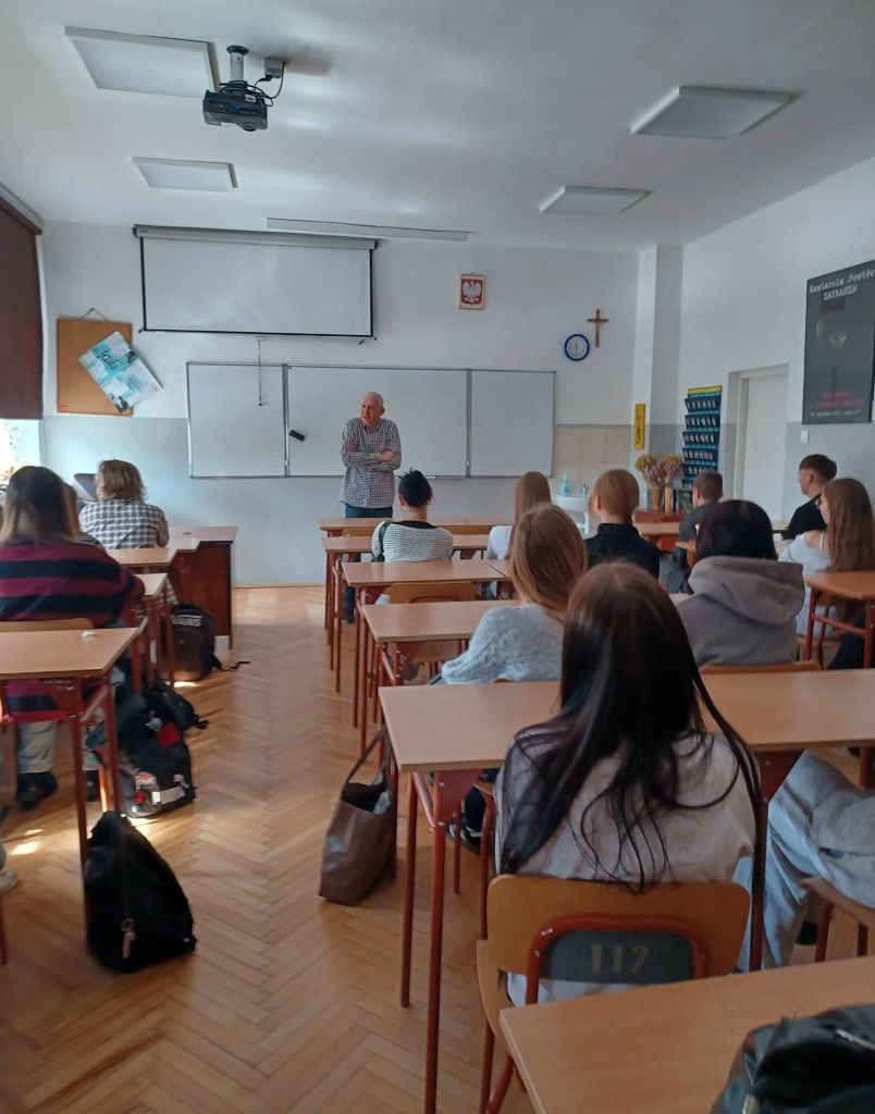 We wtorek 14 kwietnia 2026 r. na zaproszenie pań L. Aftyki, B. Kukier i M. Chudzik przybył do II LO dr hab. Jacek Chachaj, prof. KUL z Instytutu Historii tego Uniwersytetu.