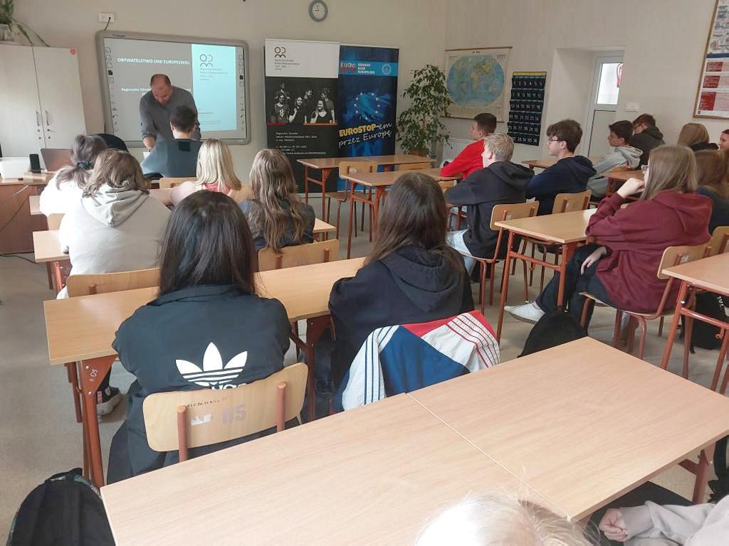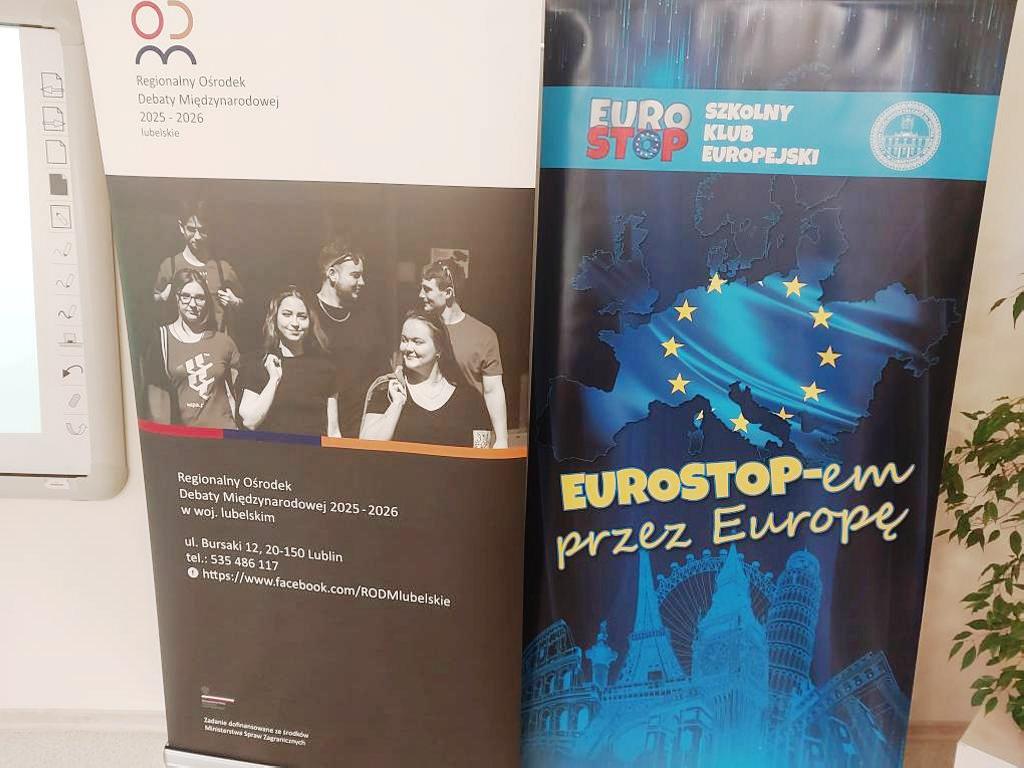 8.10.2025 Szkolny Klub Europejski „EUROSTOP” zorganizował warsztaty pt. "Prawa i obowiązki obywatela w Unii Europejskiej", których celem było przybliżenie uczniom idei i zasad funkcjonowania Unii Europejskiej, jej instytucji oraz najważniejszych zadań.