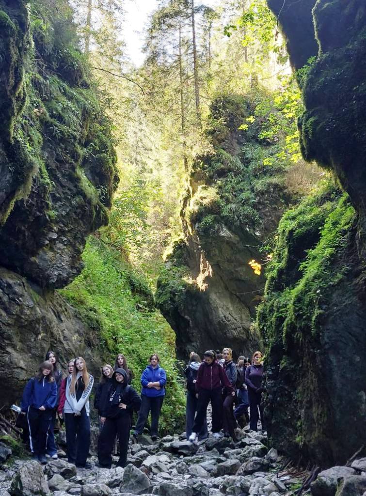 Kolejne dni wycieczki spędziliśmy w Zakopanem. Drugiego dnia młodzież podzieliła się na dwie grupy – jedna wyruszyła w wymagającą, górską trasę prowadzącą nad Czarny Staw pod Rysami, gdzie podziwiała piękno tatrzańskich krajobrazów. Druga grupa wybrała spokojniejszą wędrówkę Doliną Kościeliską, odkrywając urokliwe zakątki tego miejsca i korzystając z walorów tatrzańskiej przyrody.