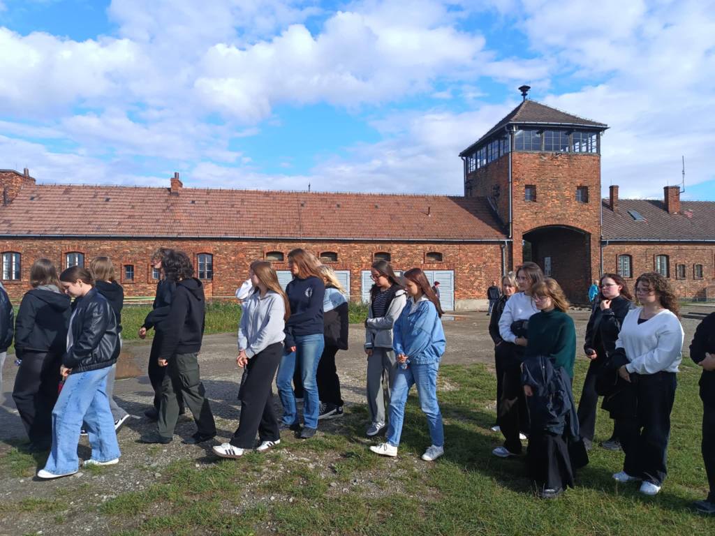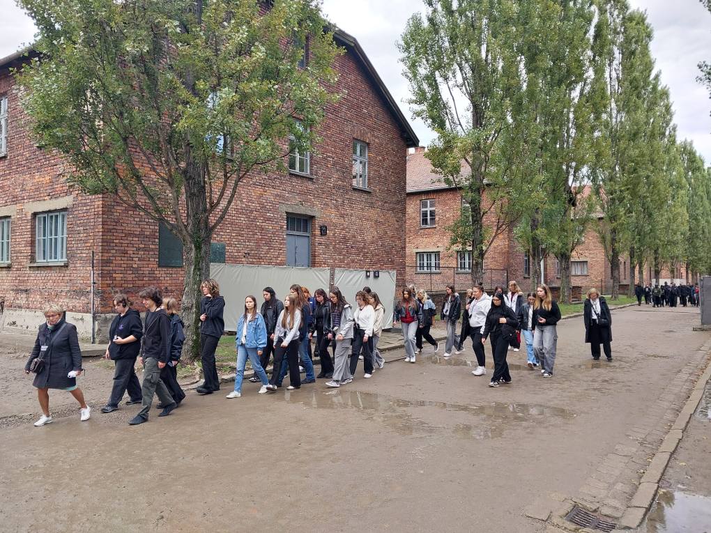 Pierwszym punktem programu było zwiedzanie Miejsca Pamięci i Muzeum Auschwitz-Birkenau. Uczniowie, oprowadzani przez przewodników, mieli okazję poznać historię obozu, zobaczyć autentyczne baraki więźniarskie oraz miejsca upamiętniające ofiary. Było to niezwykle poruszające doświadczenie, które na długo pozostanie w pamięci uczestników.