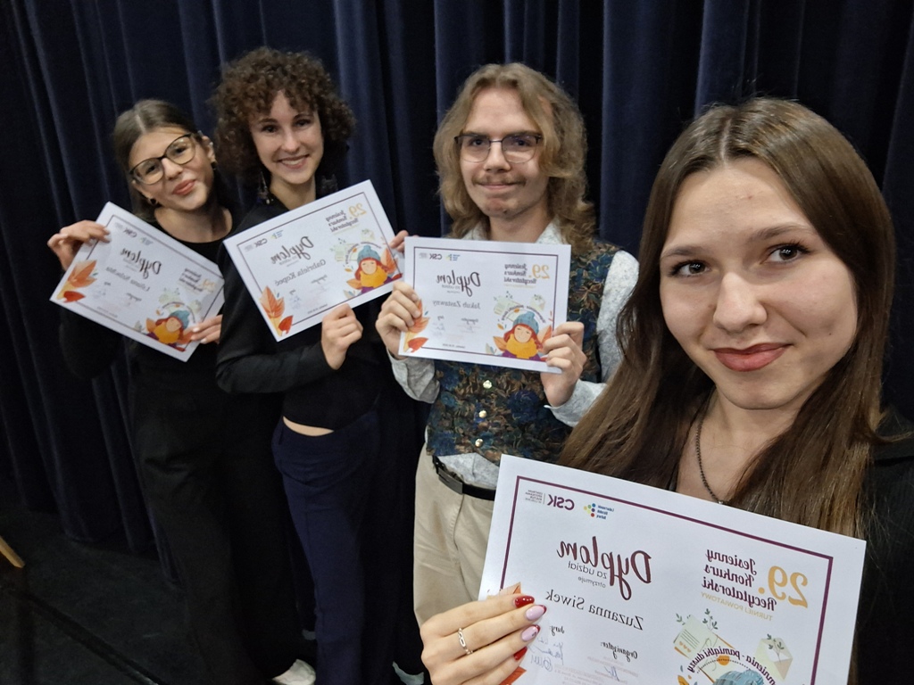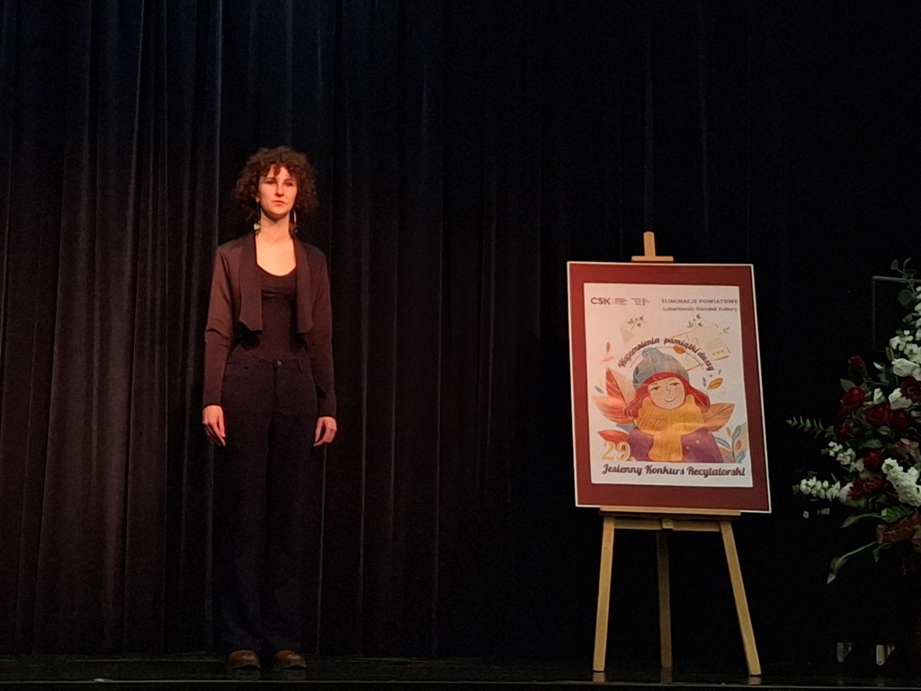 Wyjątkowym sukcesem uczniów naszego liceum zakończyły się powiatowe eliminacje 29. Jesiennego Konkursu Recytatorskiego. Zuzanna Siwek z kl. IV e, Gabriela Kopeć z kl. IV g, Liliana Szlachta z kl. IV e oraz Jakub Zastawny z kl. IV i otrzymali nagrody. Ponadto Zuzanna Siwek znalazła się w gronie uczestników z powiatu lubartowskiego, którzy zostali zakwalifikowani do przeglądu wojewódzkiego.