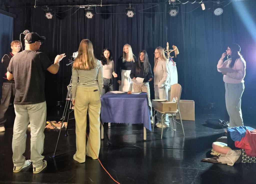 Wiktoria Łukasiewicz, zdobywczyni nagrody w II Ogólnopolskim Konkursie Literacko-Kabaretowym „Lubartów 33”, oraz jej koleżanki i koledzy z klasy 3c uczestniczyli w warsztatach multimedialnych w LOK-u. Pod czujnym okiem reżysera Bartosza Gorzela nasi uczniowie nagrali film na podstawie sztuki teatralnej Wiktorii.