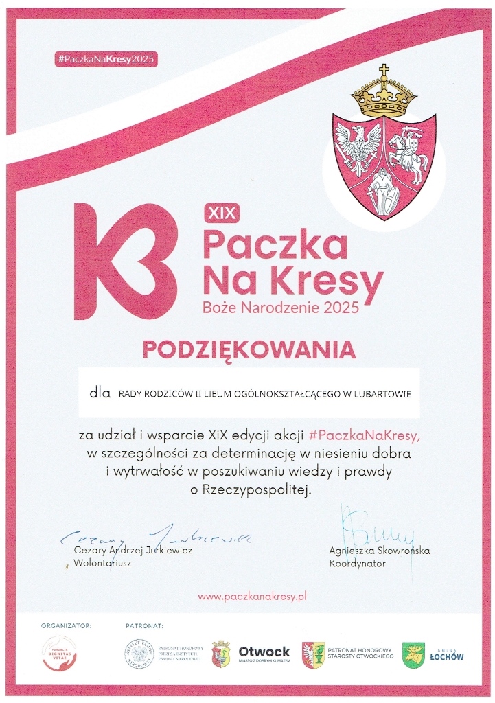 Podziękowanie dla II LO za udział i wsparcie XIX edycji akcji #PaczkaNaKresy.