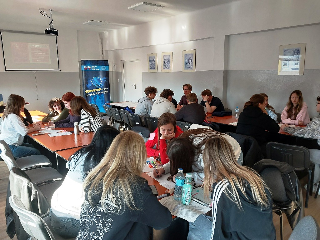 8.10.2025 Szkolny Klub Europejski „EUROSTOP” zorganizował warsztaty pt. "Prawa i obowiązki obywatela w Unii Europejskiej", których celem było przybliżenie uczniom idei i zasad funkcjonowania Unii Europejskiej, jej instytucji oraz najważniejszych zadań.